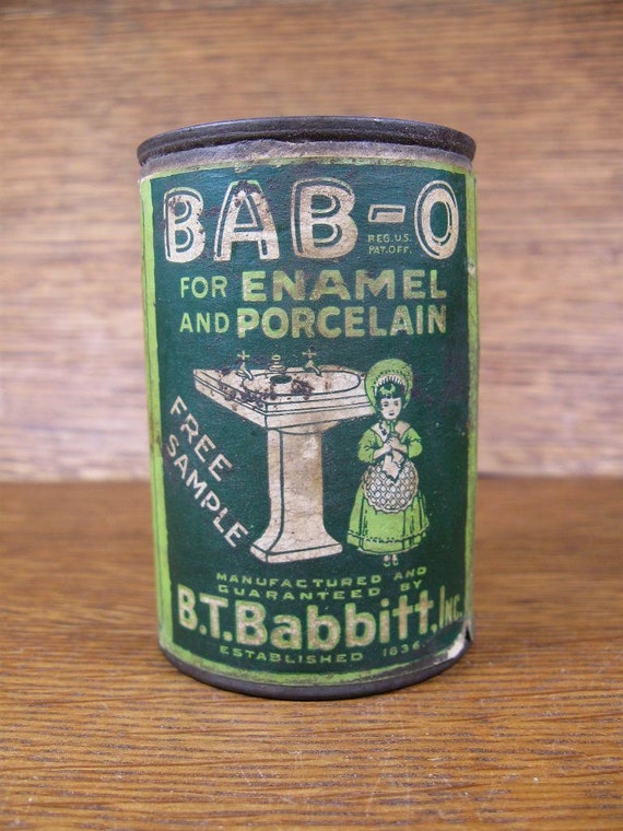 Vintage B T Babbitt Bab O Enamel Cleaner Free Sample Coin Savings Bank With Paper Label Little Girl Antique Sink Ny